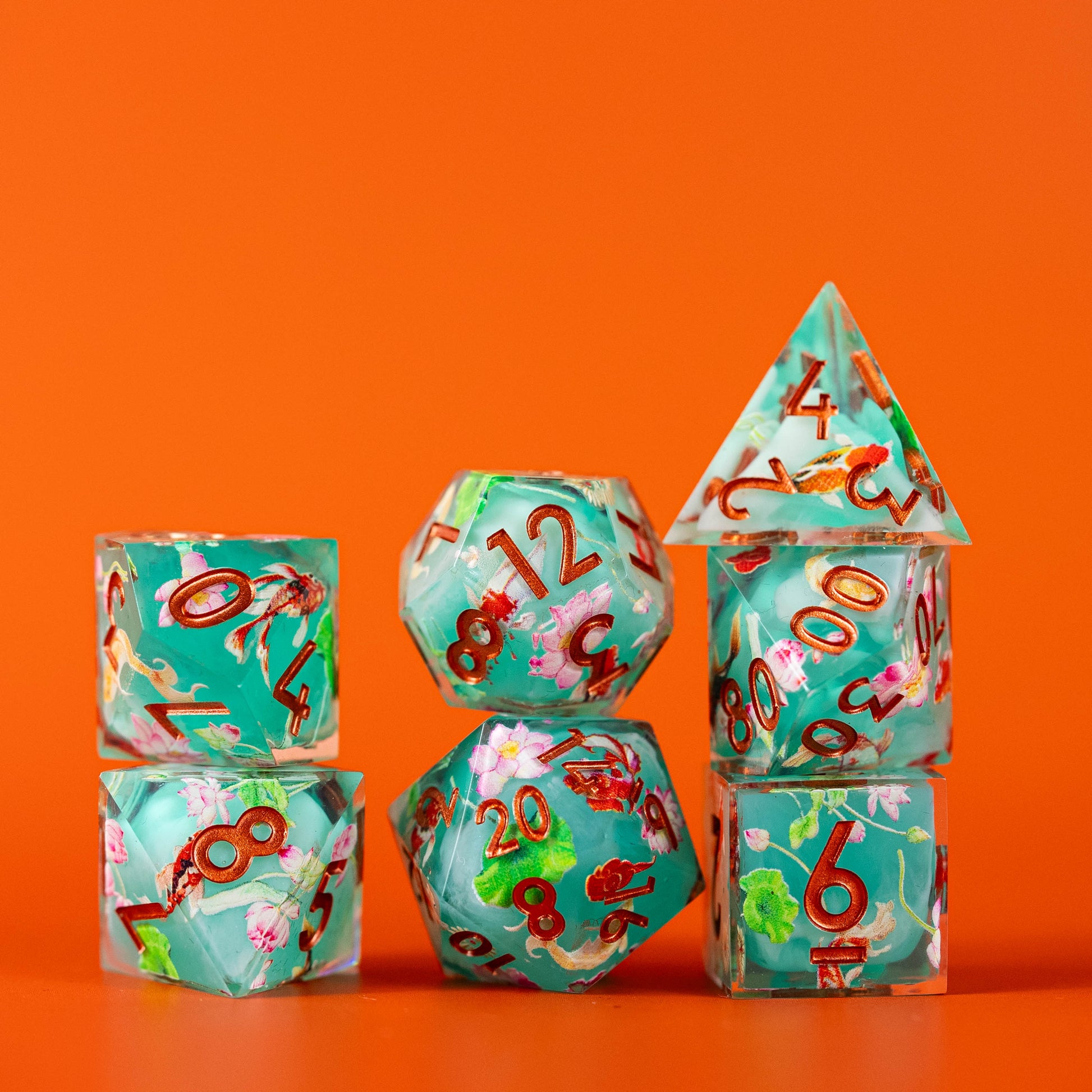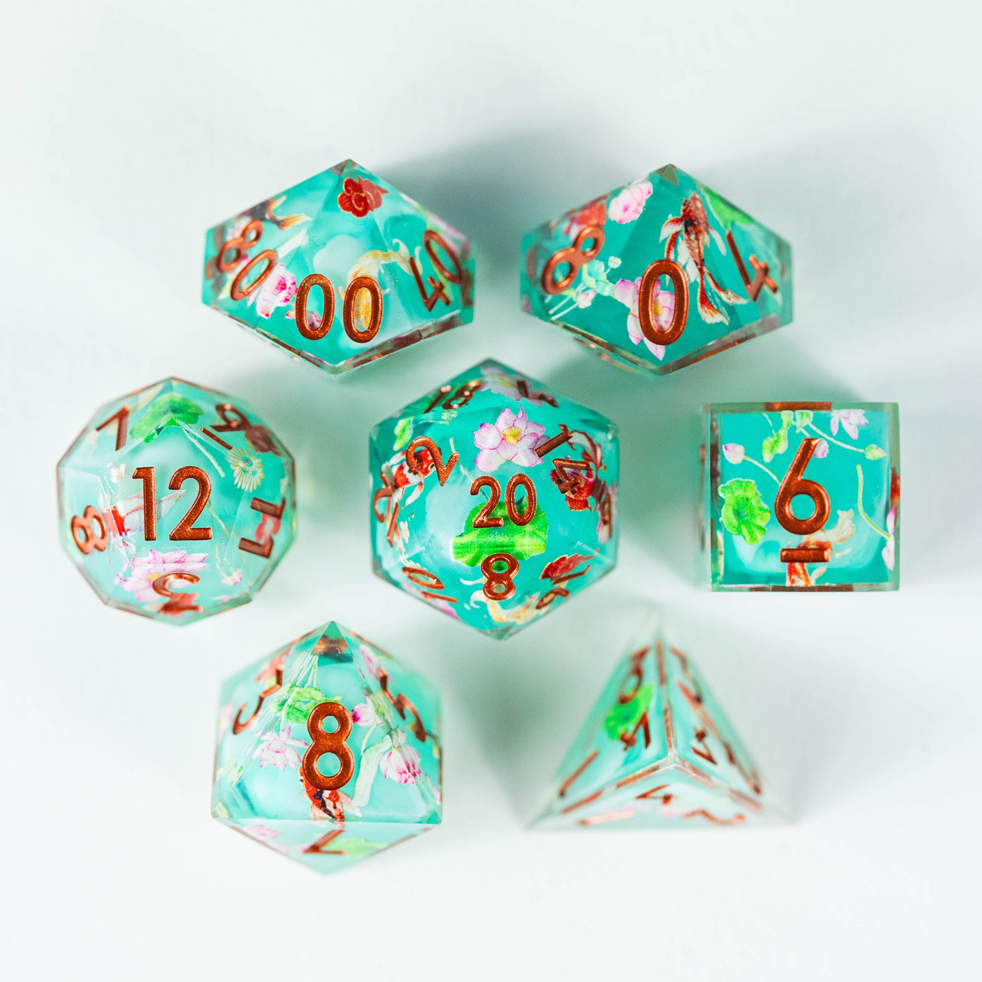 Eau Paisible | Set de dés JDR en résine sculptée en strates