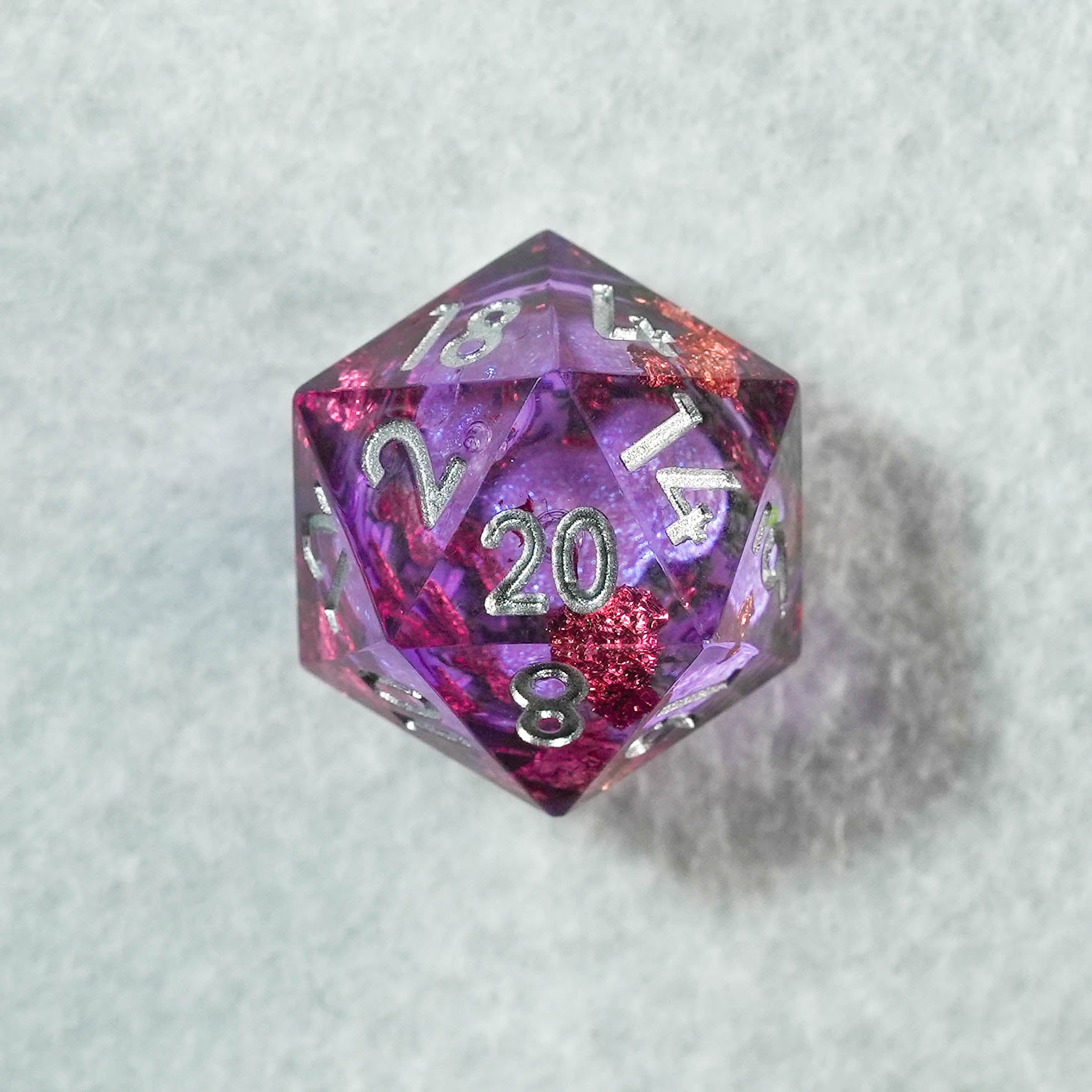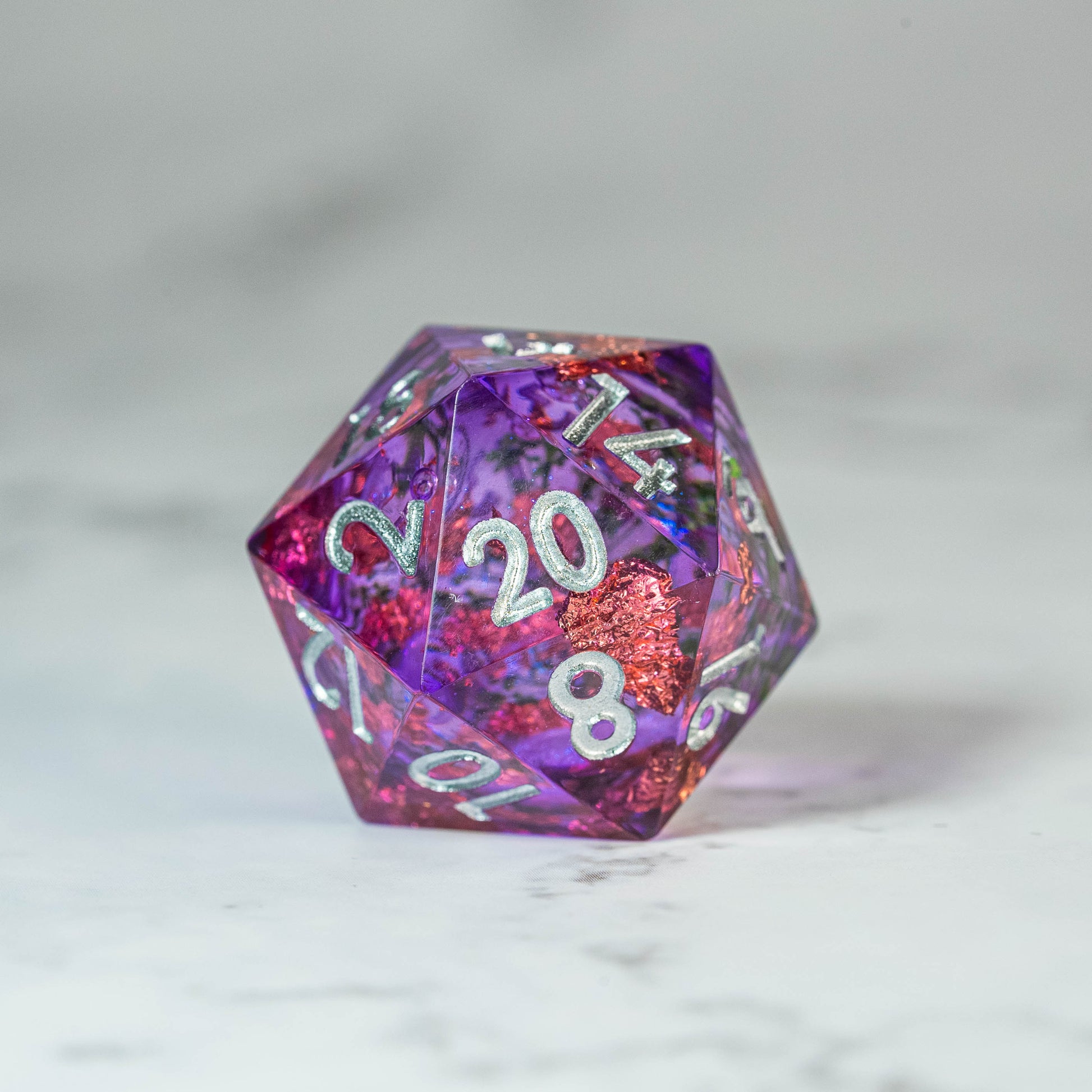 Cœur de Dryade est un set de dés JDR à cœur liquide (liquid core) effet boule de neige.