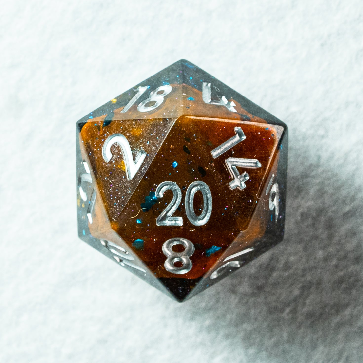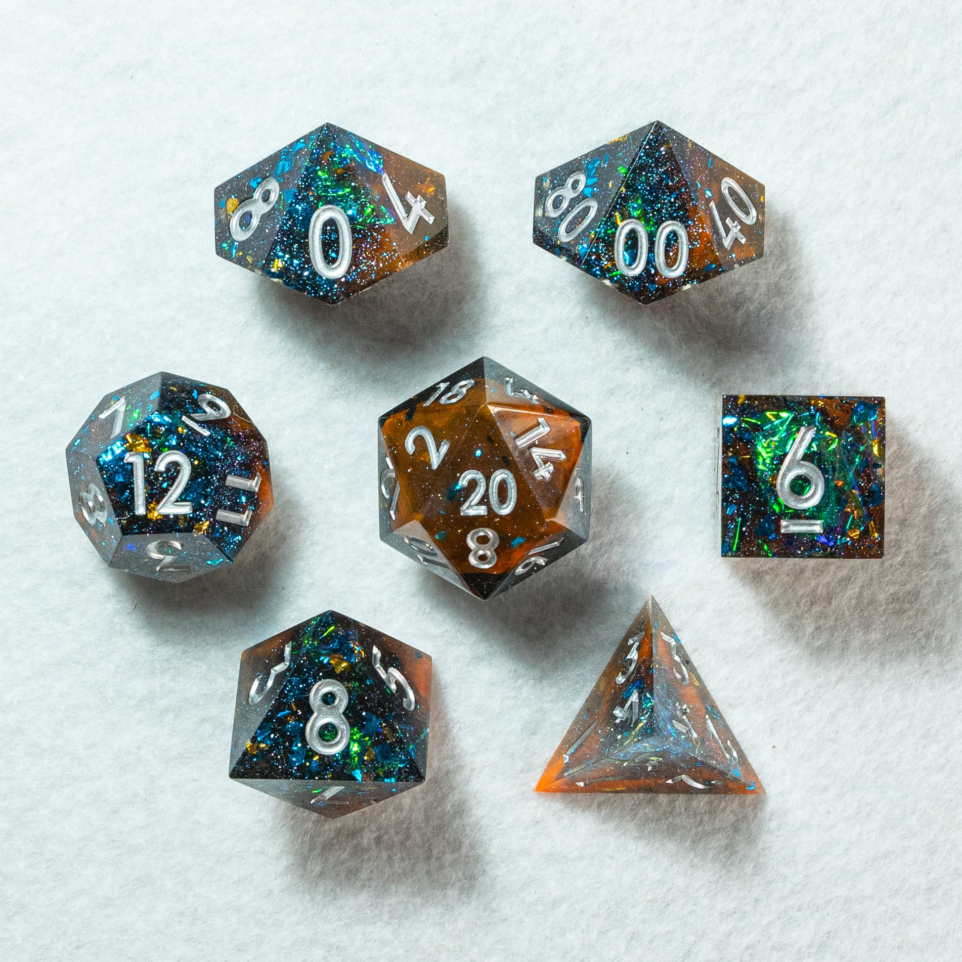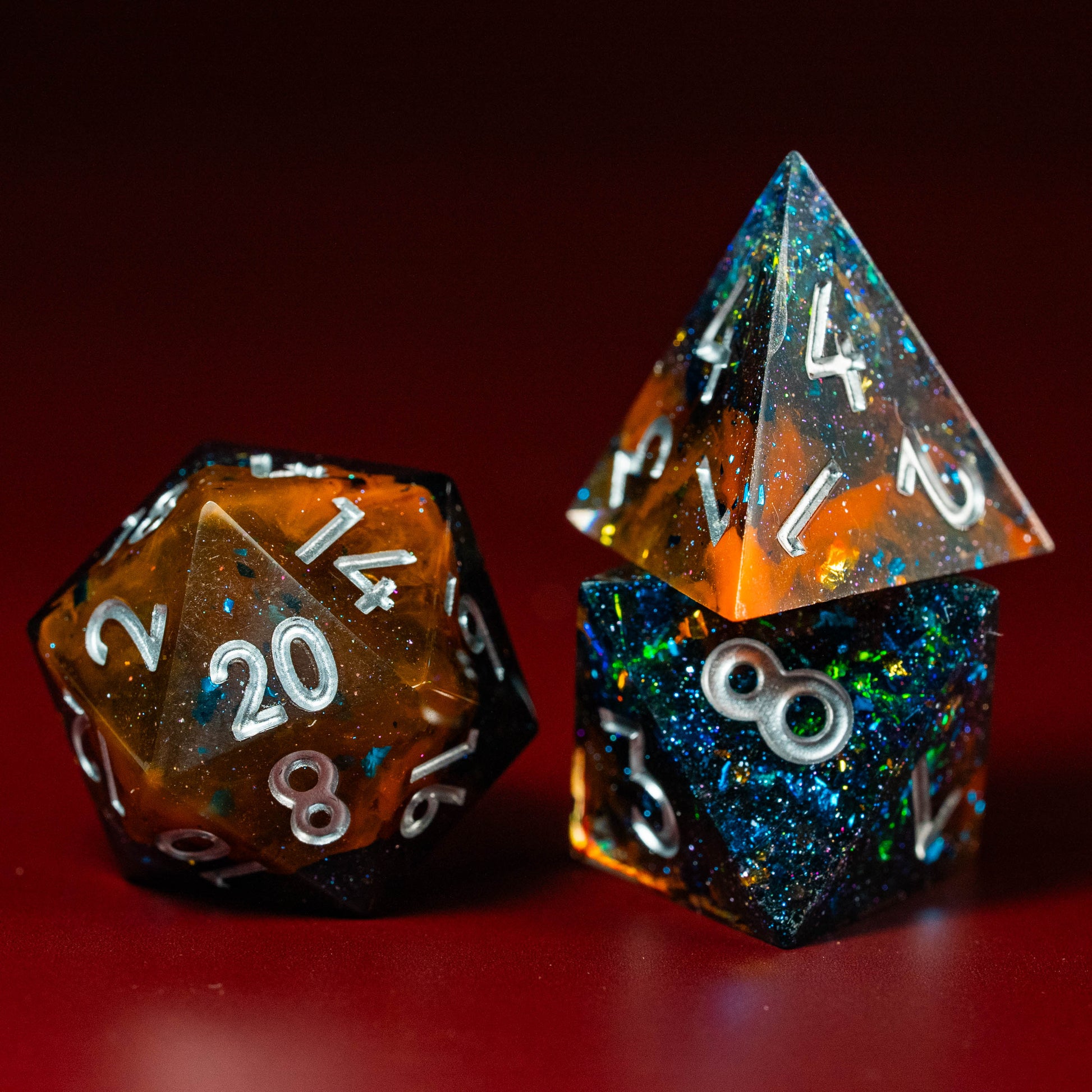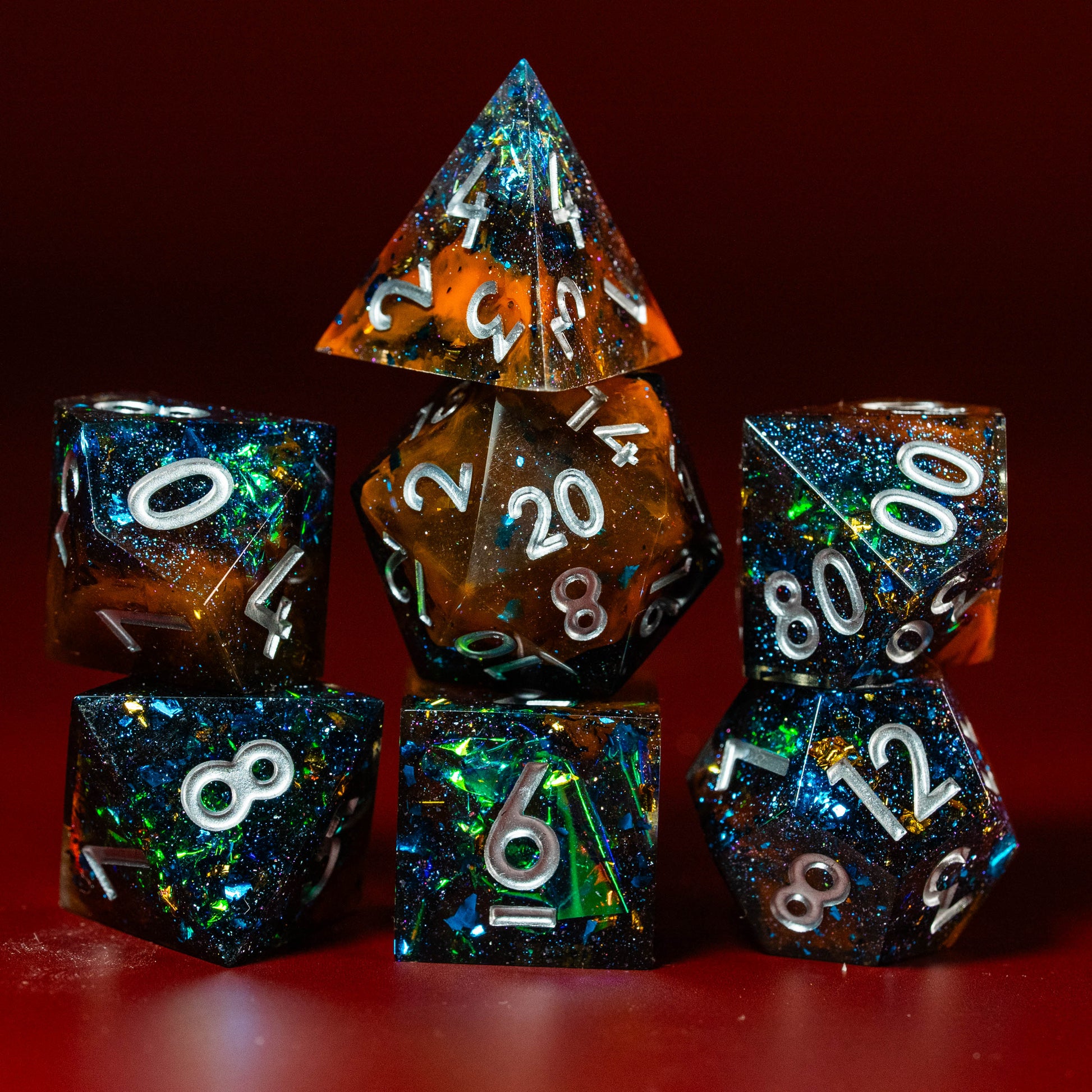 Ciel Étoilé est un set de dés JDR en résine à bords tranchants.