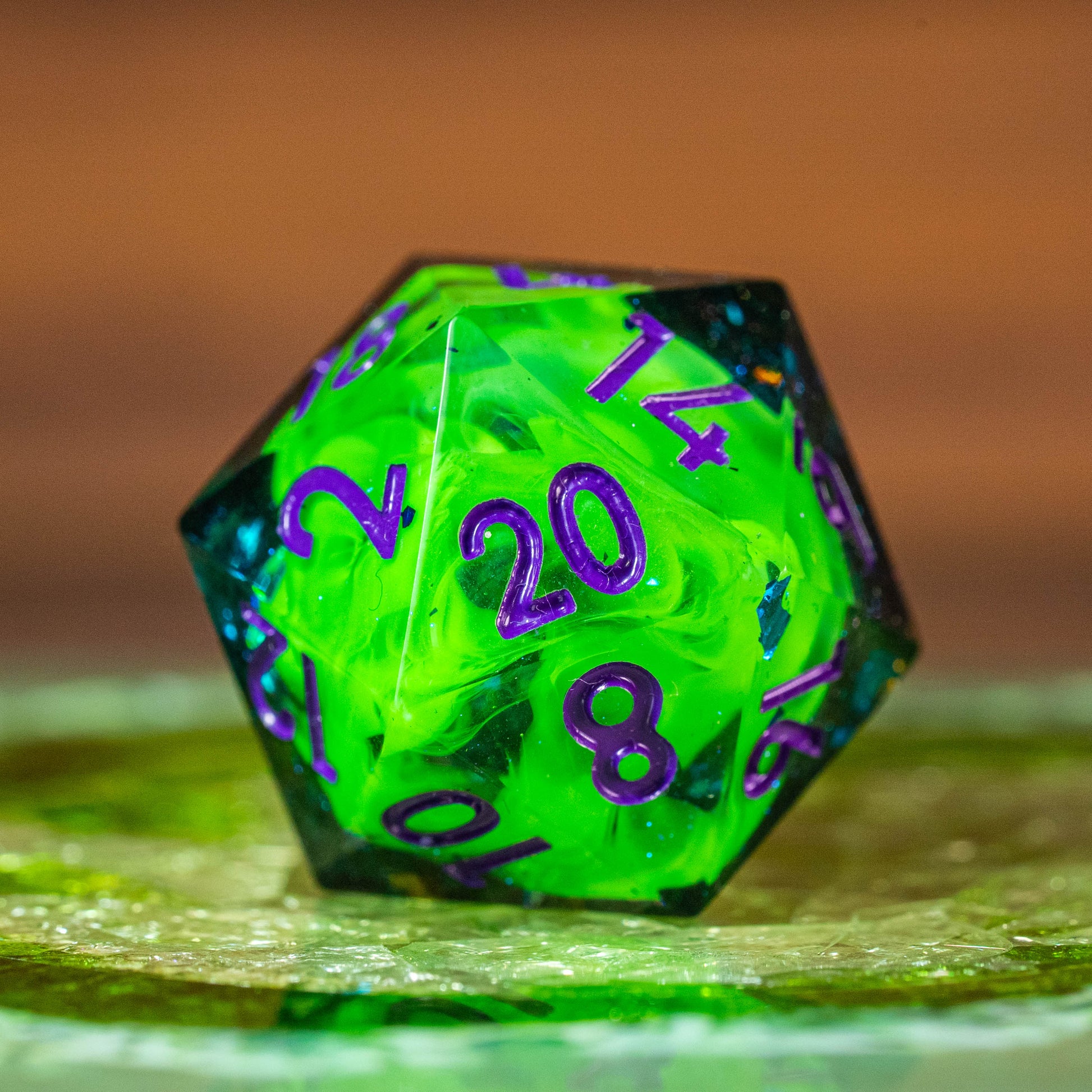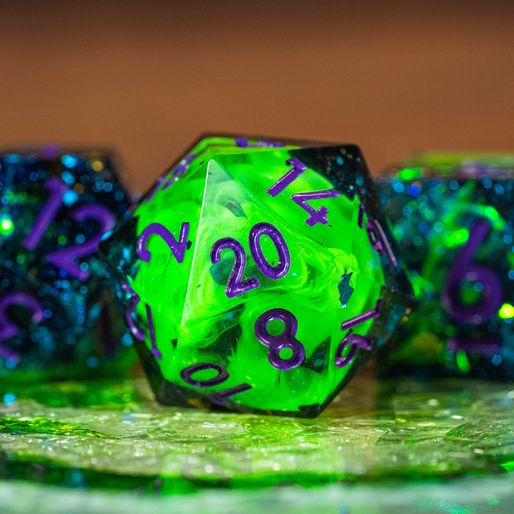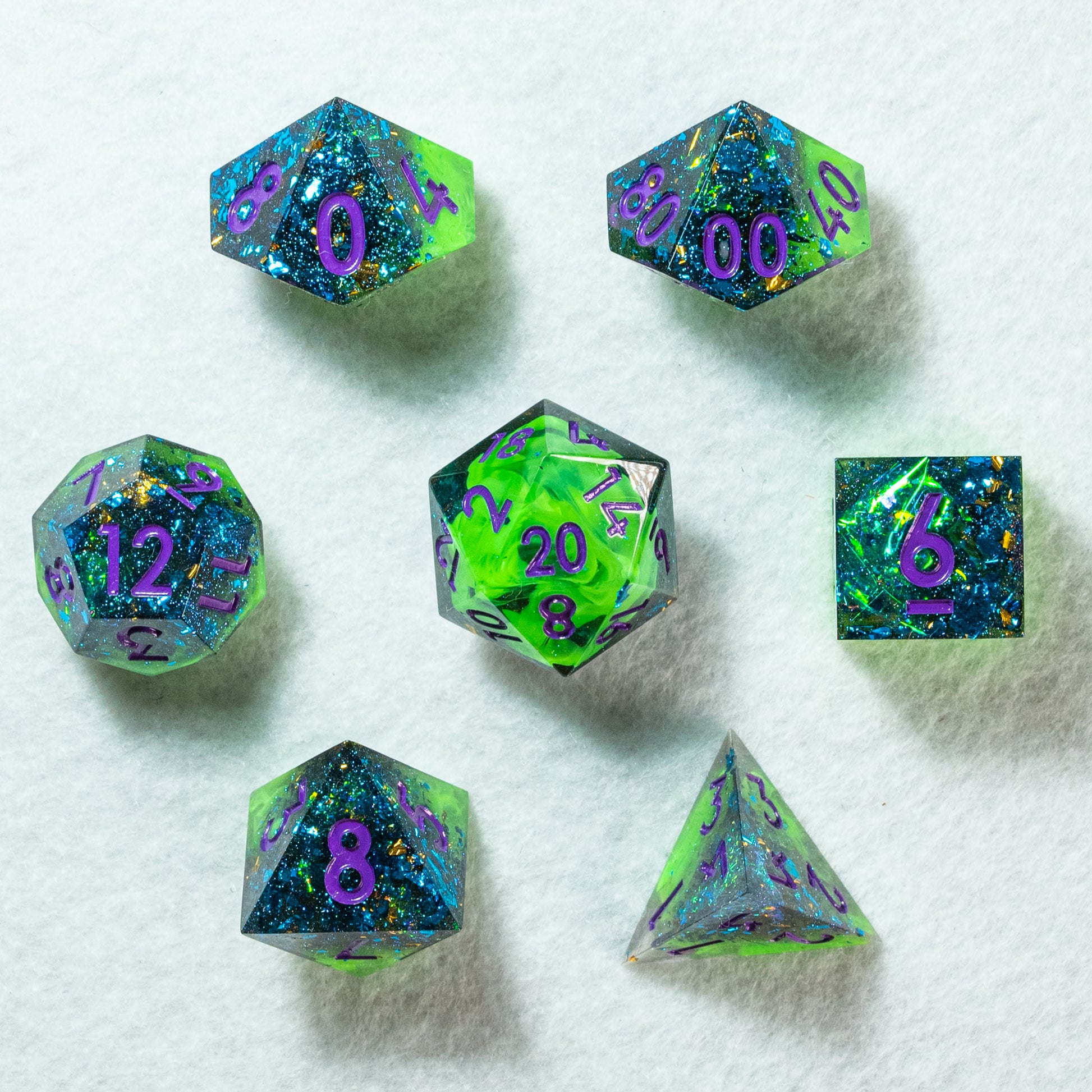 Médusa est un set de dés JDR en résine à bords tranchants.