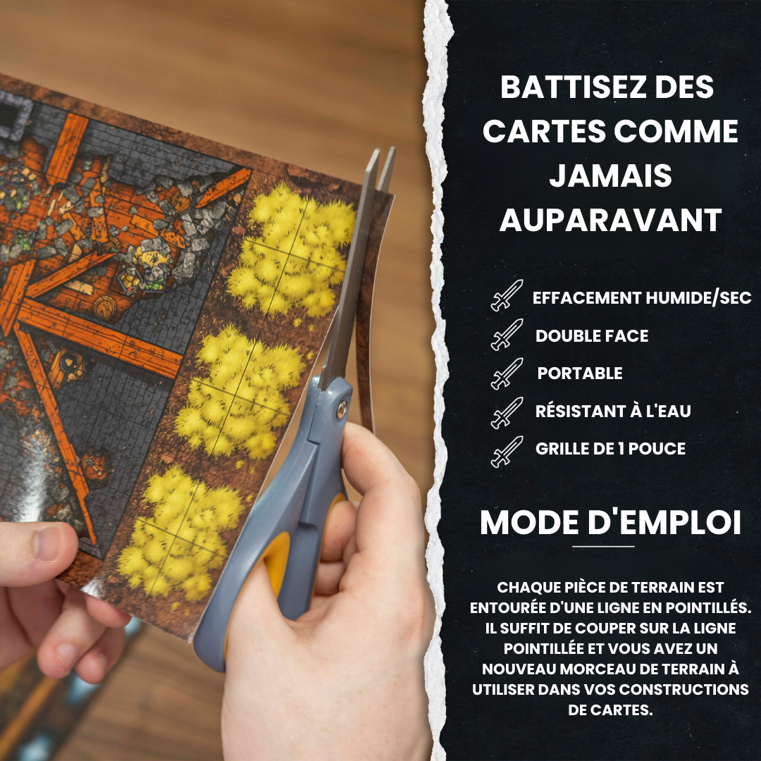 Die Dungeon Craft-Bücher sind Kisten mit unendlichen Möglichkeiten, die Hunderte von Versatz stücken, Monstern und NPCs enthalten. Stücke können aus geschnitten und auf jeder Kampf karte mit einem 1-Zoll-Raster platziert werden(1 "/2,5 cm). Diese bestehen aus haltbarer Pappe mit einer Laminat beschichtung, um sie wasserfest zu machen, und sind mit trockenen (Velleda-Typ) oder wasser lösch baren Markern kompatibel.