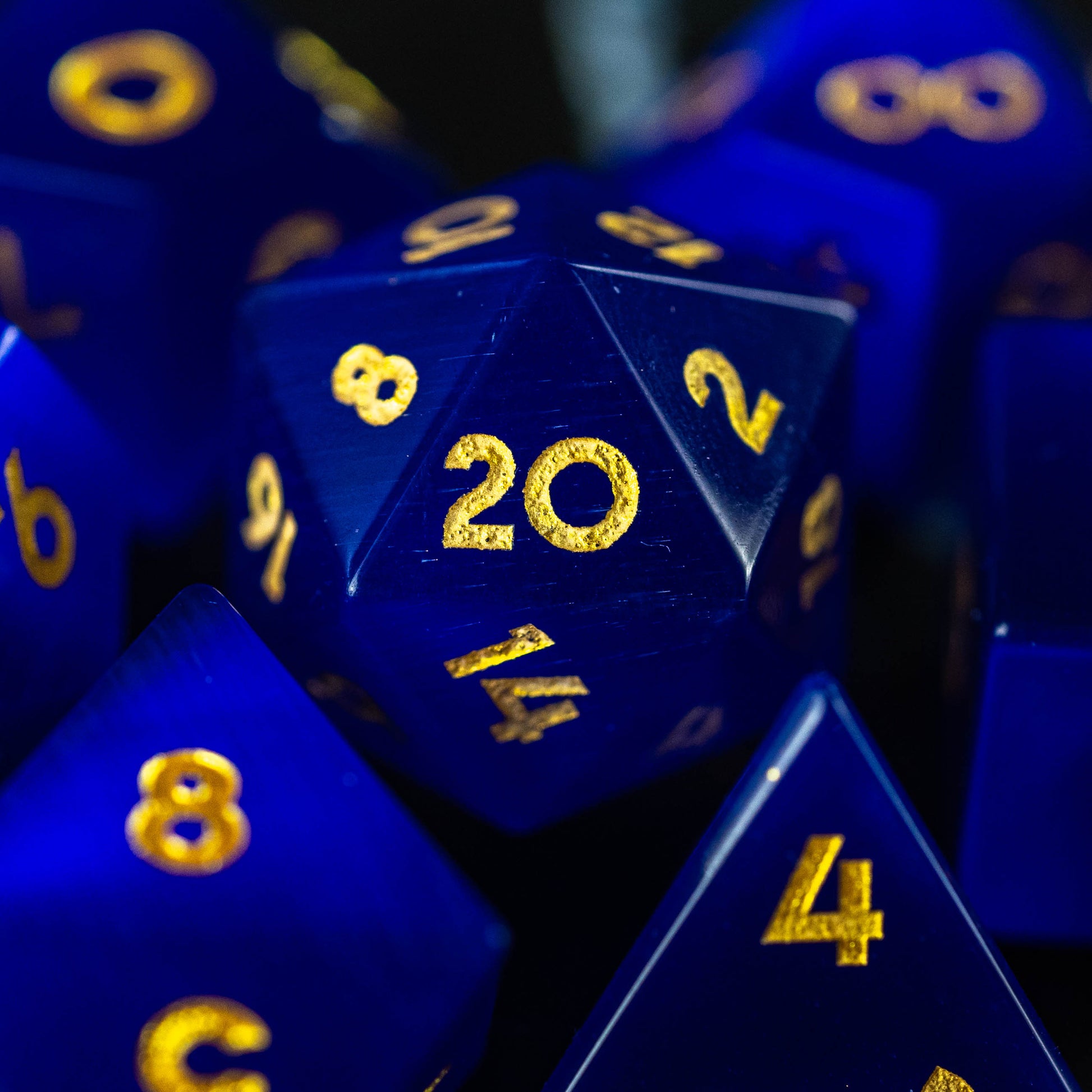Jedes The Hoard-Würfelset ist ein Unikat, da es von Hand hergestellt, geschliffen, poliert und graviert wird.