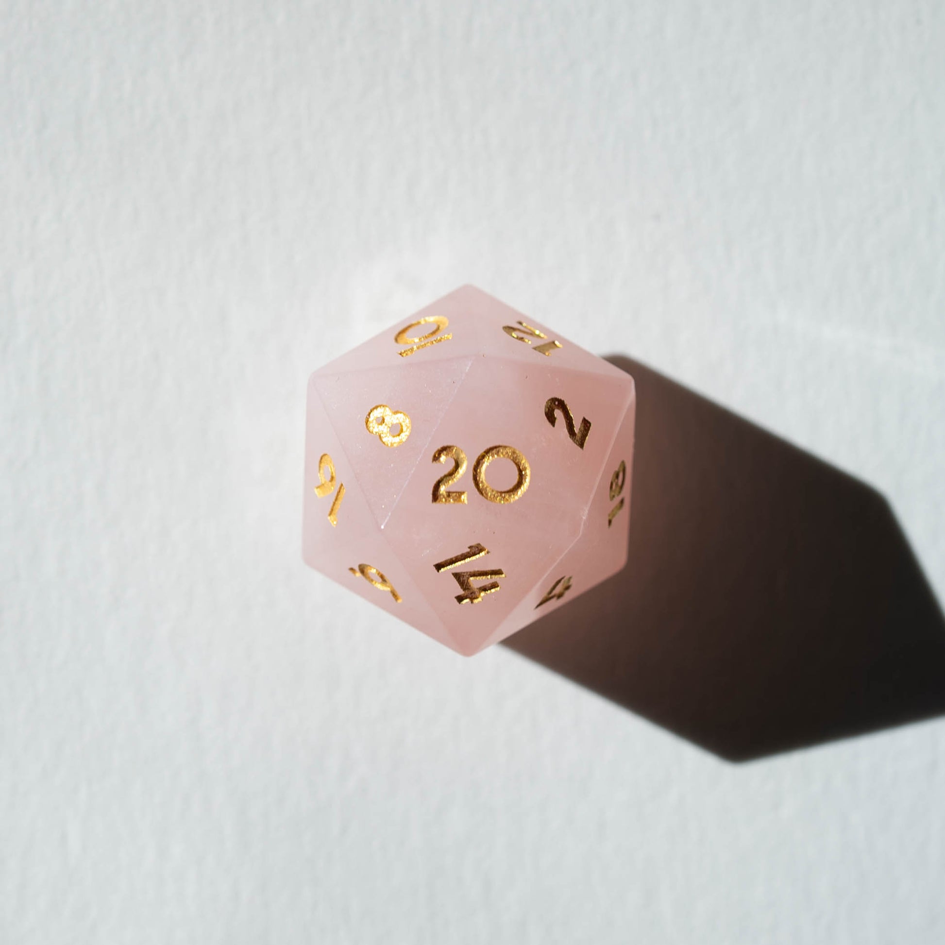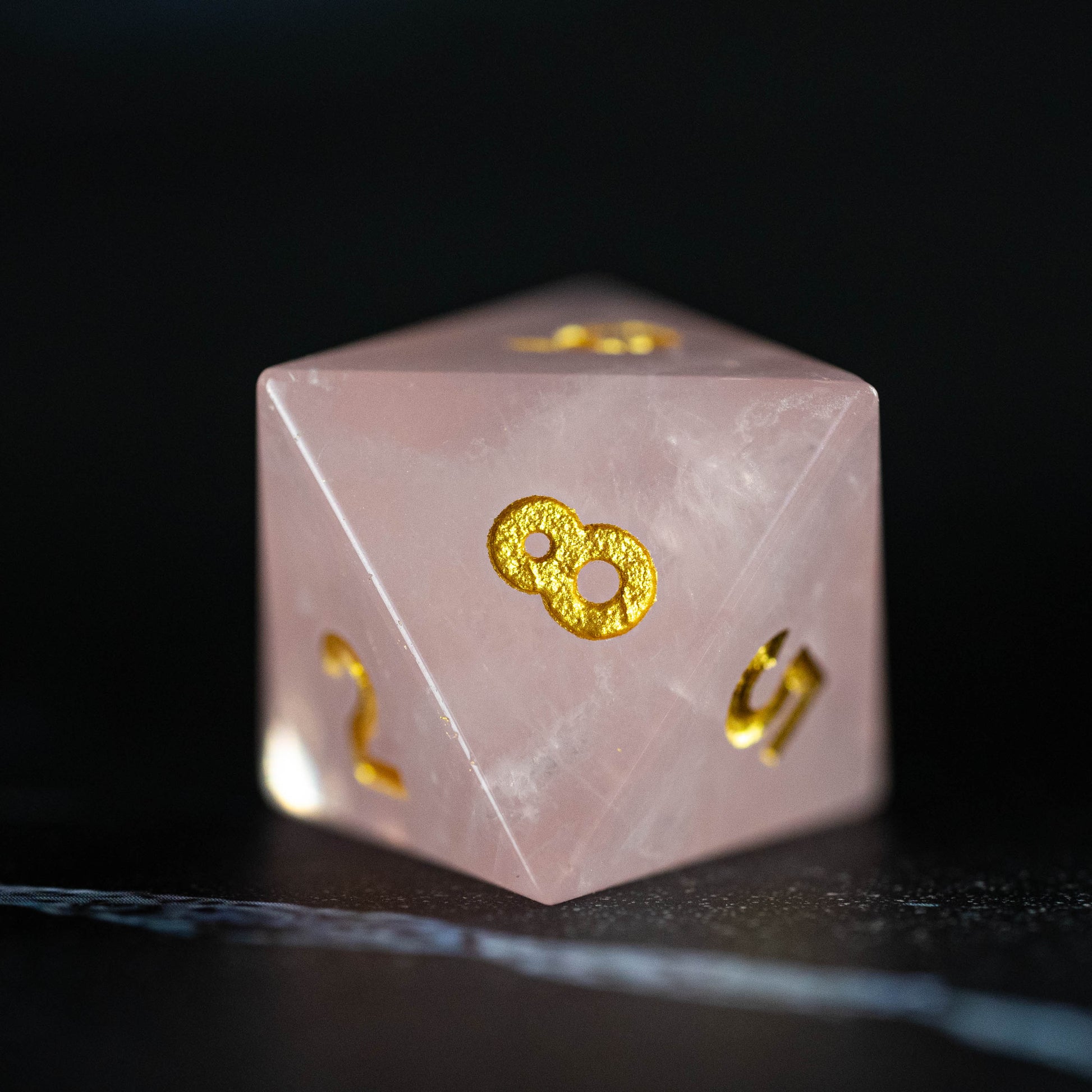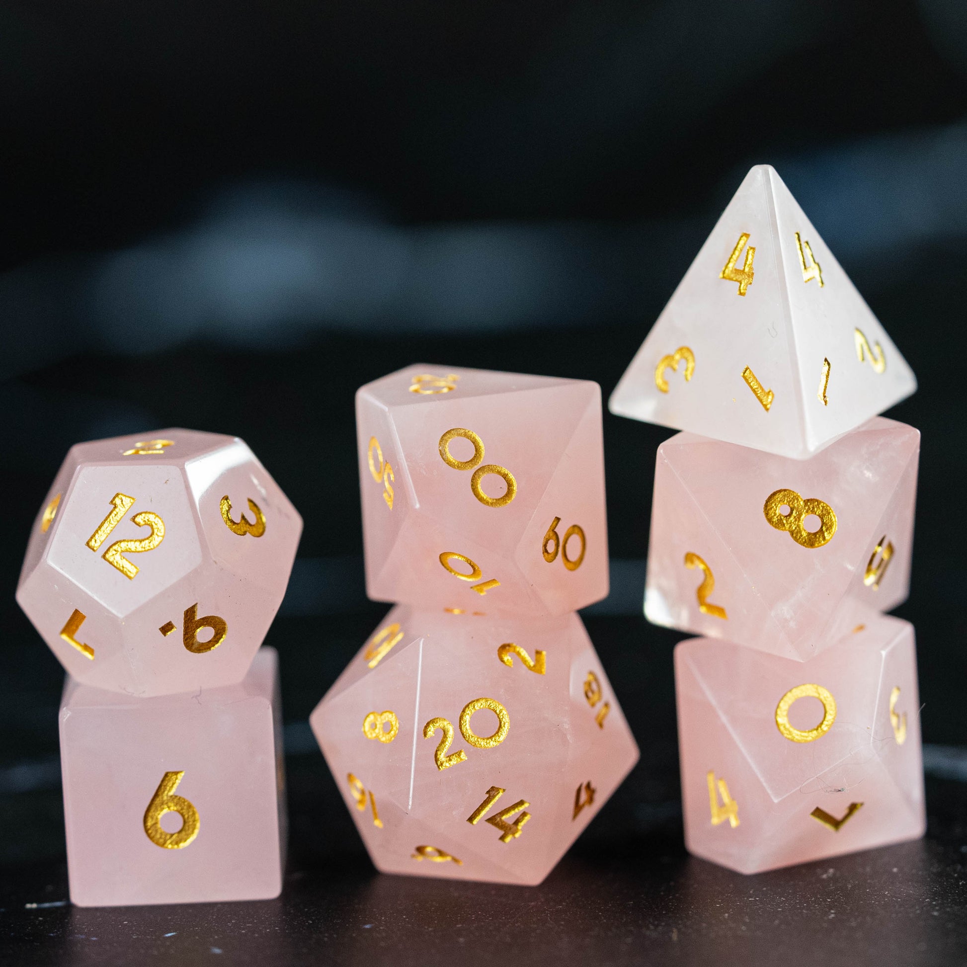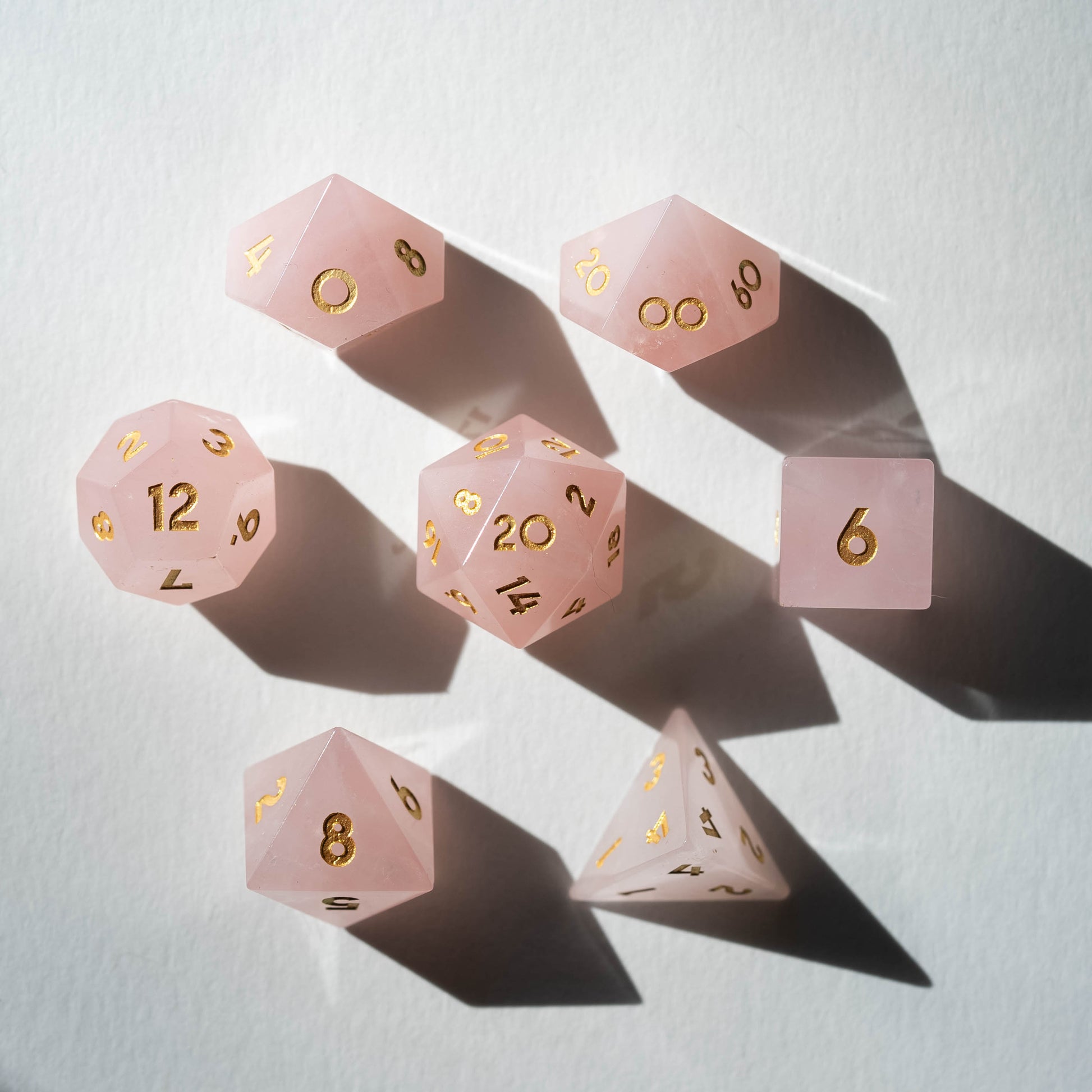 Liebkosung der Morgenröte | Rosenquarz-RPG-Würfel-Set