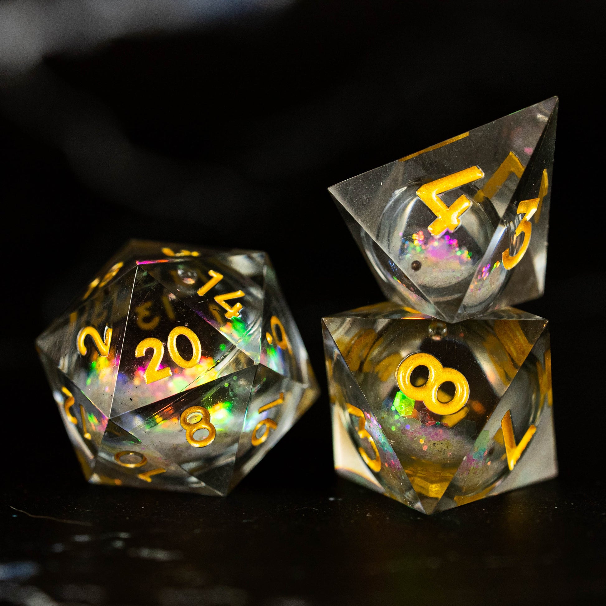 Dunkle Essenz ist ein Satz RPG-Würfel schillernder flüssiger Kern.