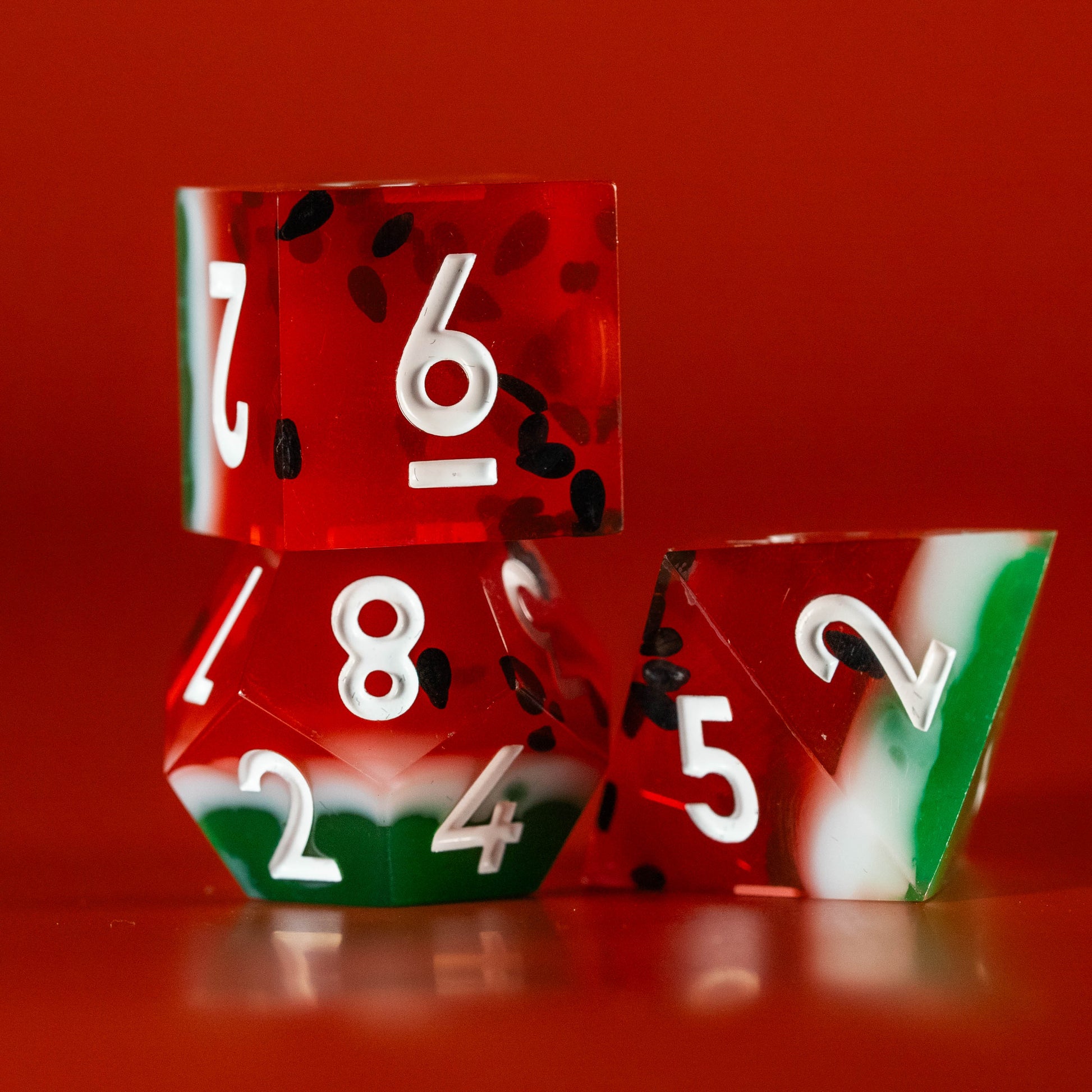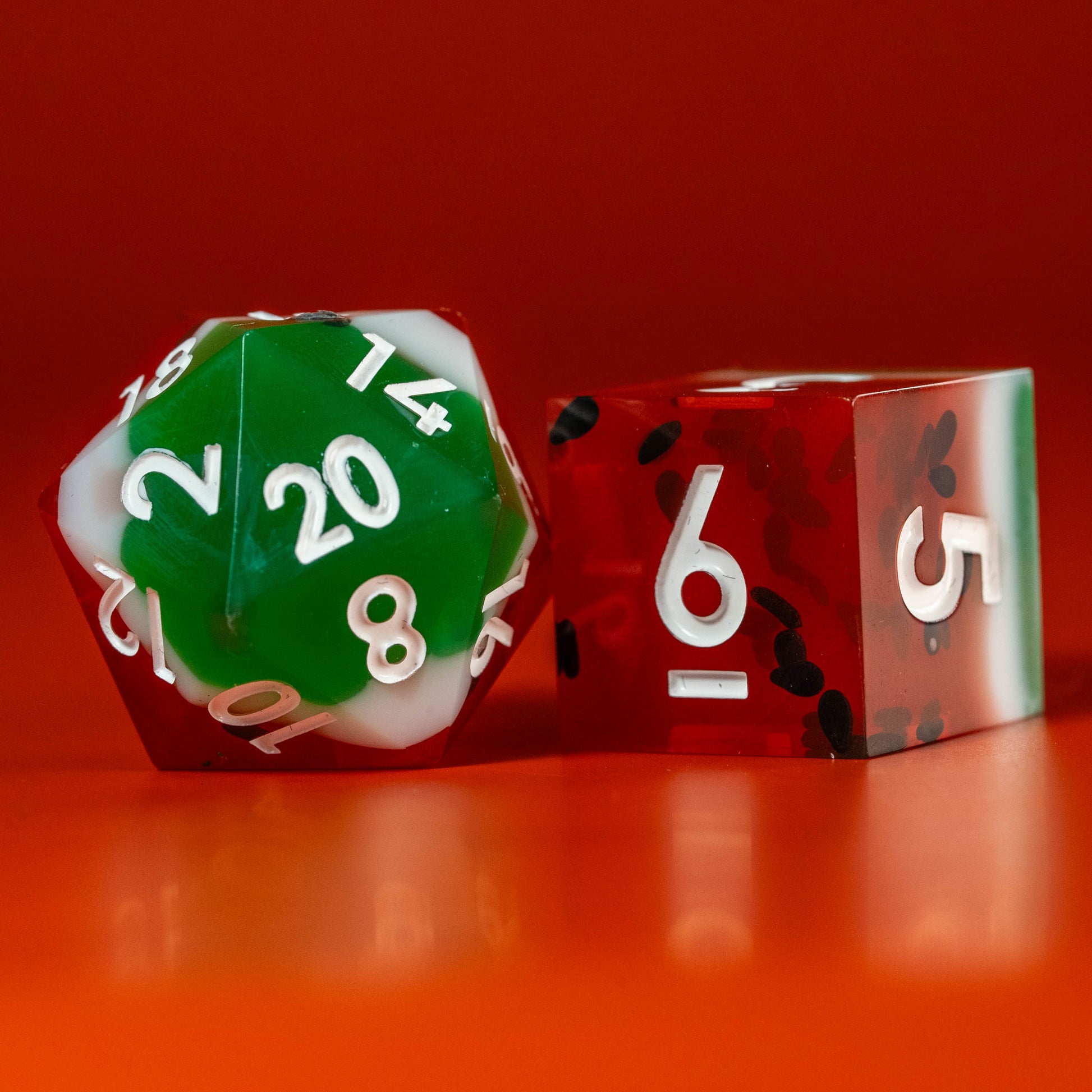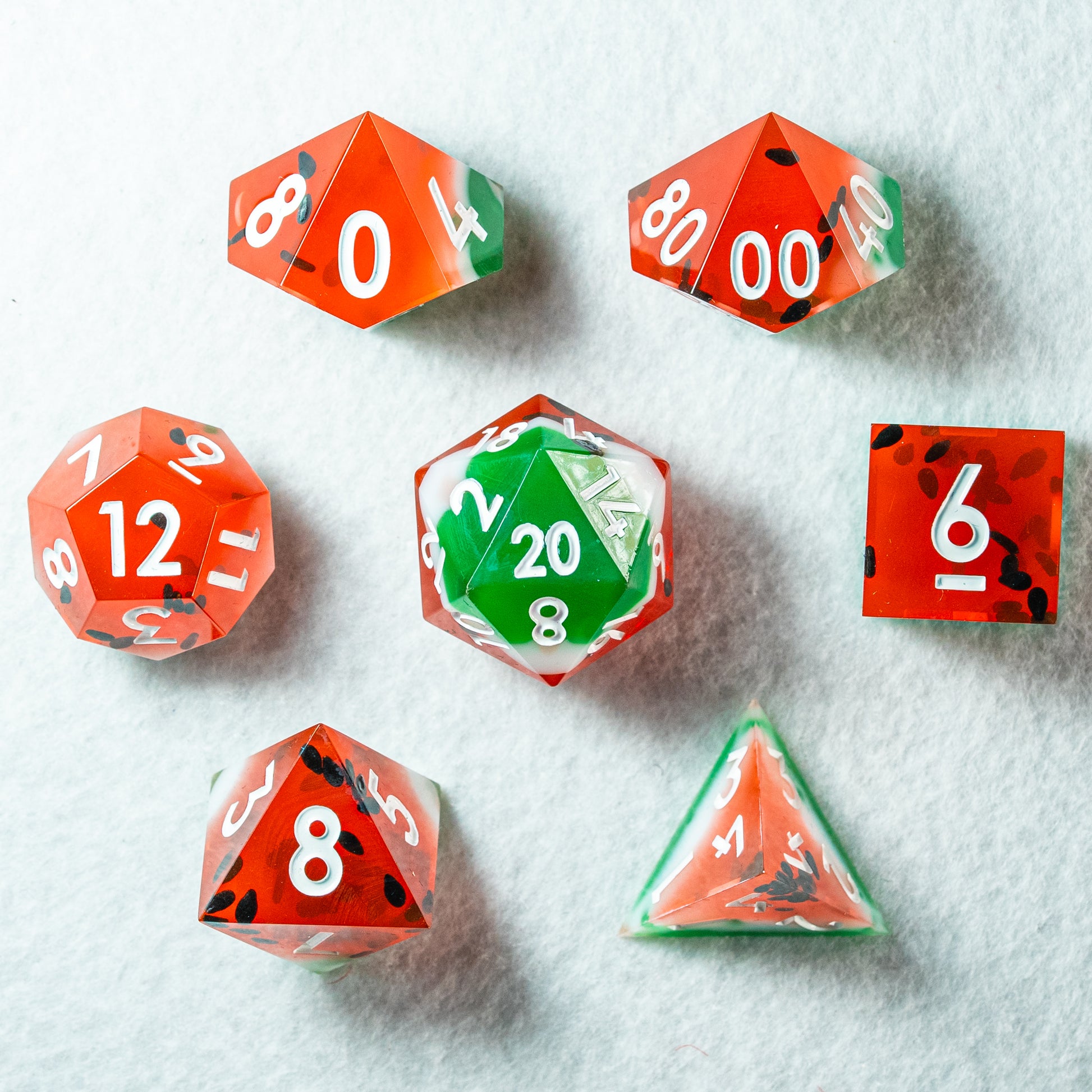 Wassermelonen ist ein Satz RPG-Würfel in Harz scharfkantig.