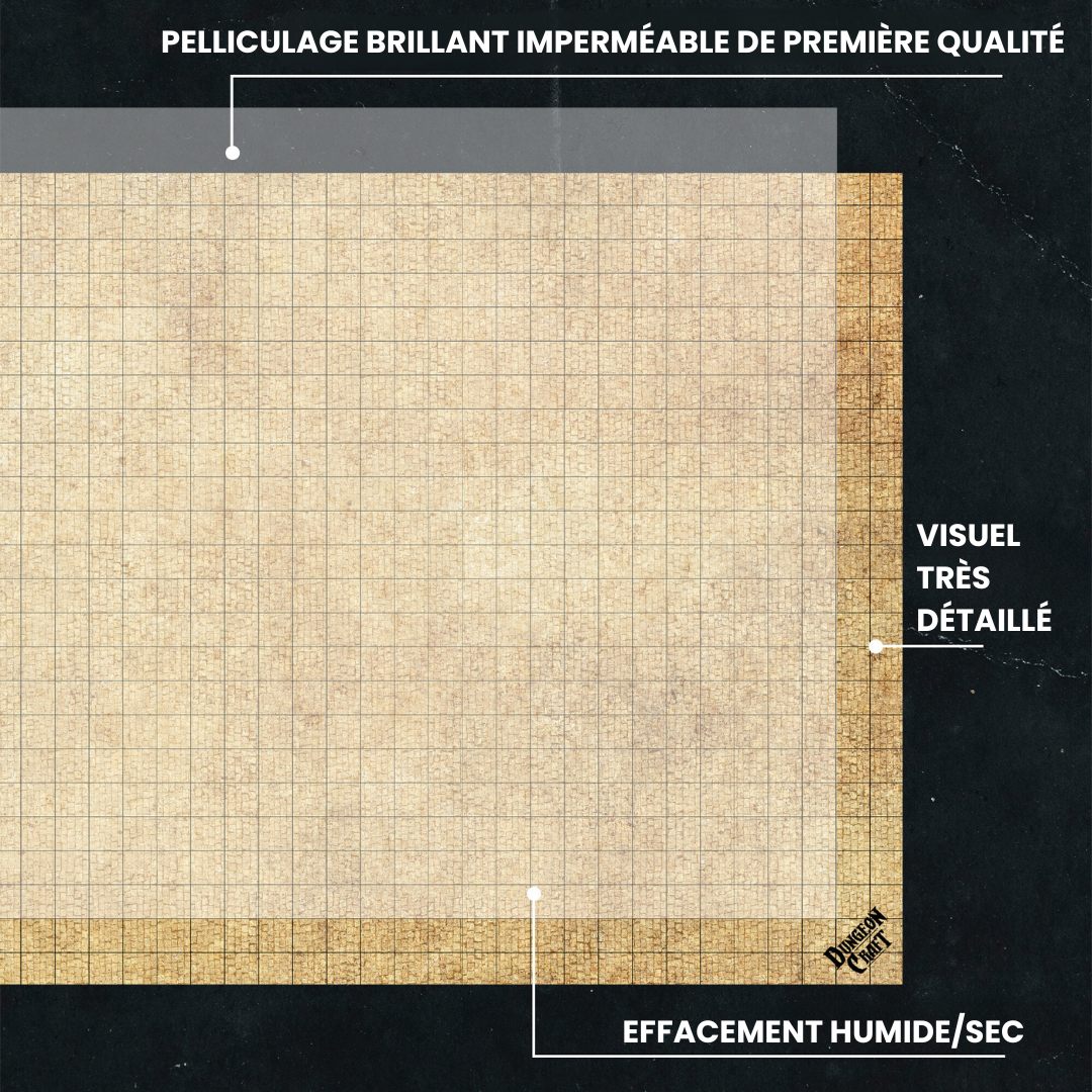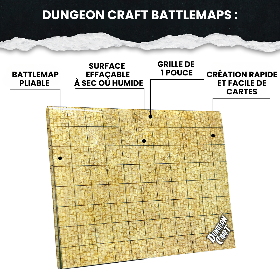 Les cartes Battlemap, mesurant 24"x33" (61cm x 84cm), et quadrillées avec des carrés de 1" (2.54cm), présentent des textures qui s'harmonisent parfaitement avec nos produits Dungeon Craft. C'est un ajout idéal à la collection de tous ceux qui veulent monter d'un cran le niveau de leur expérience JDR.
