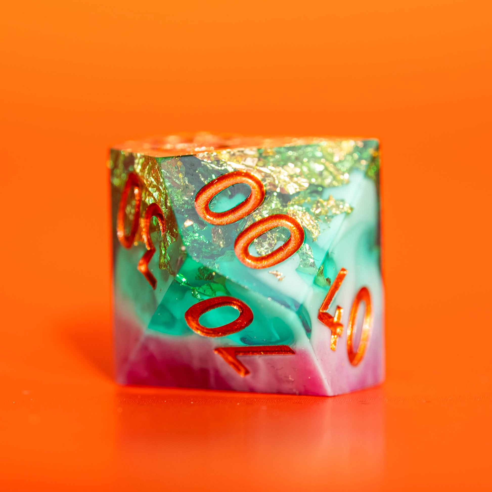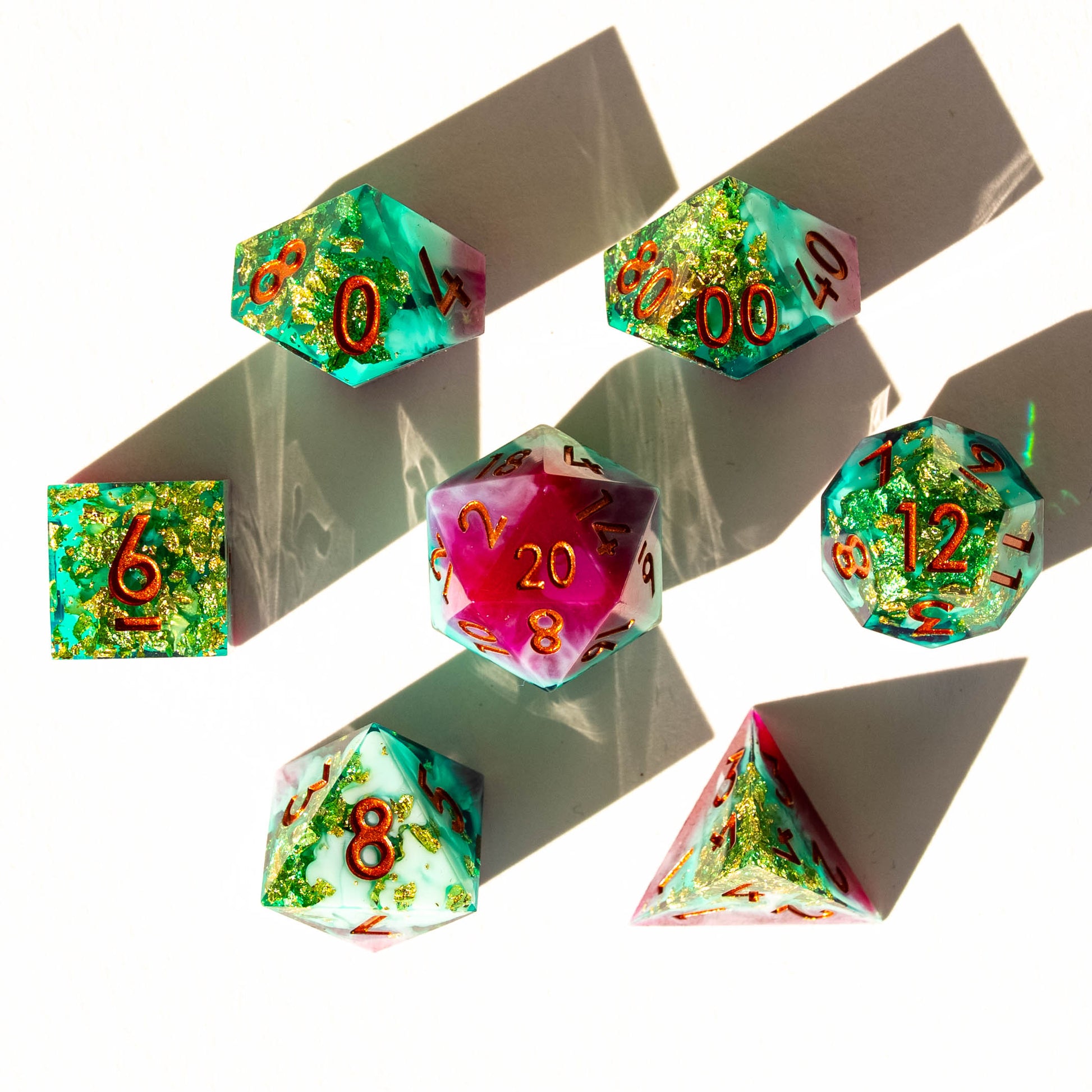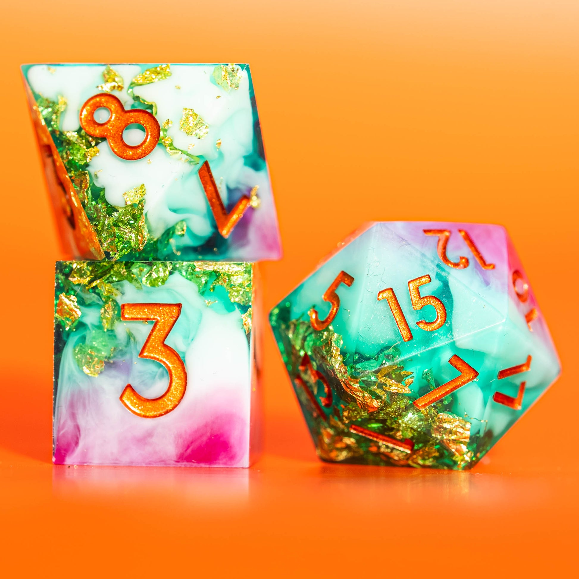 Brume Envoûtante est un set de dés JDR en résine à bords tranchants.