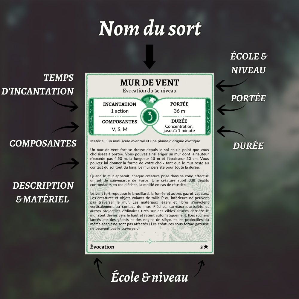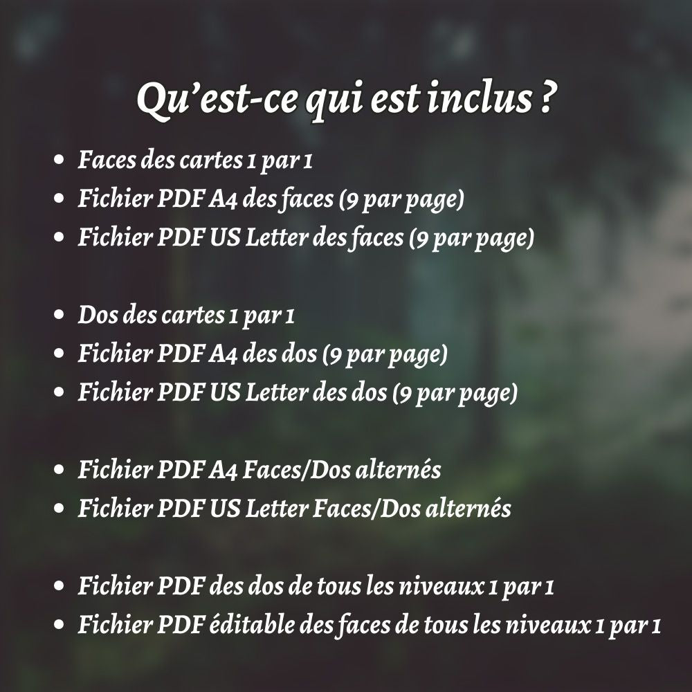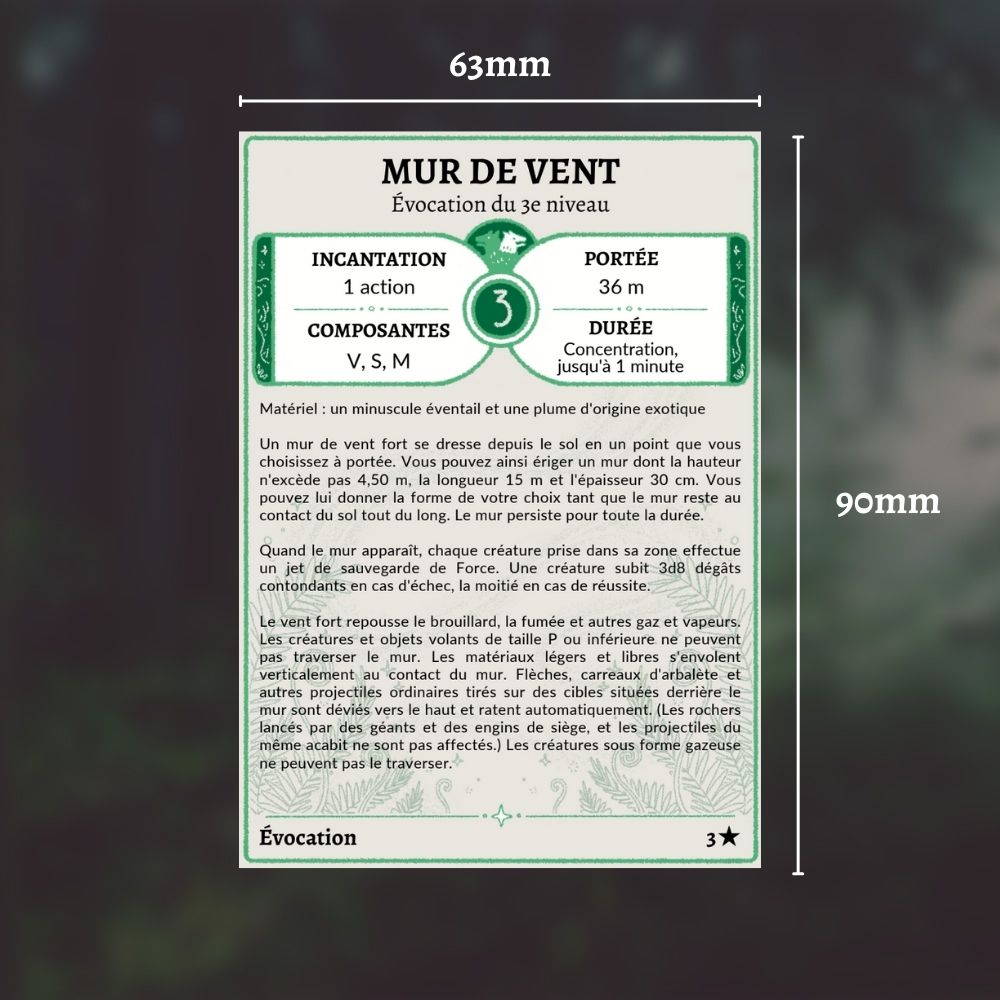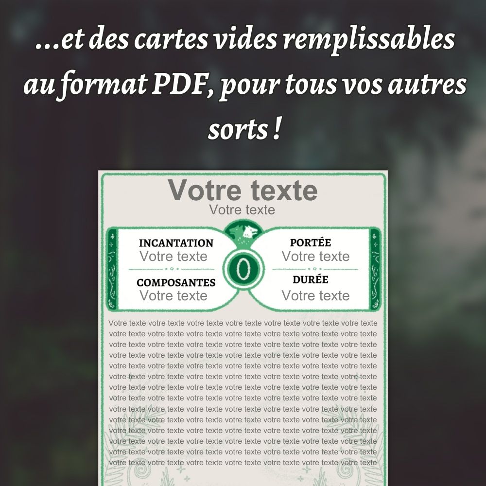 ✨ En plus des sorts ci-dessous, ce jeu contient des cartes vides remplissables au format PDF pour tous vos autres sorts ! ✨