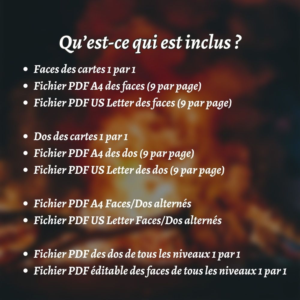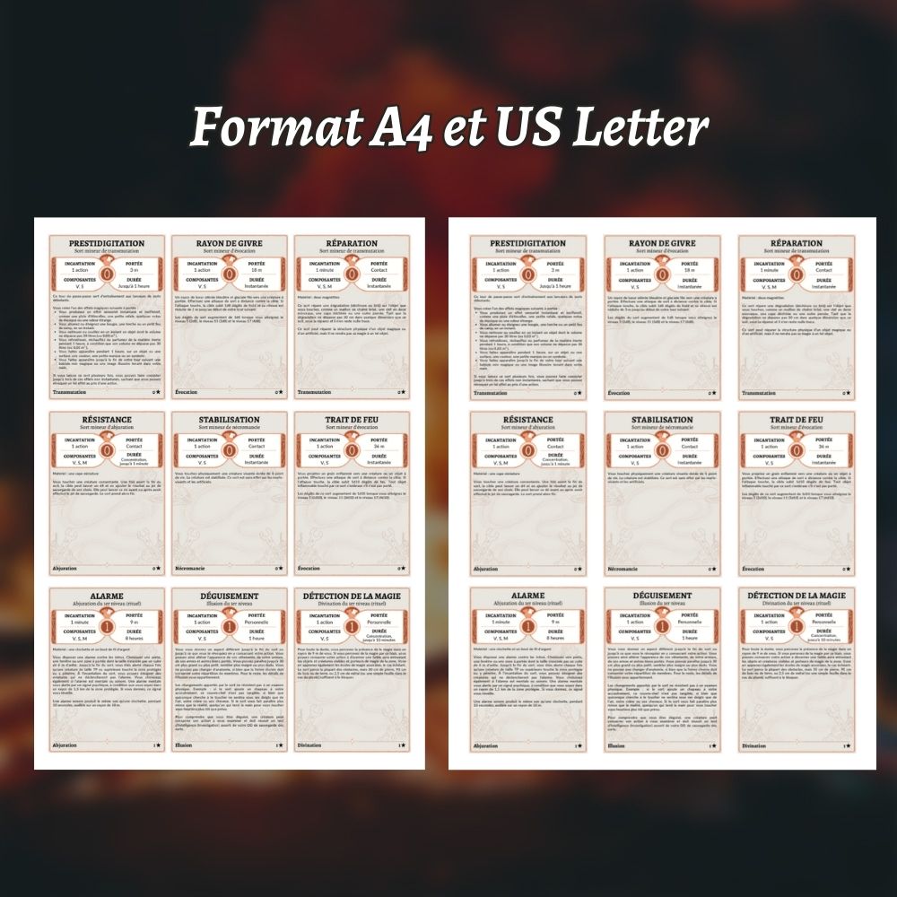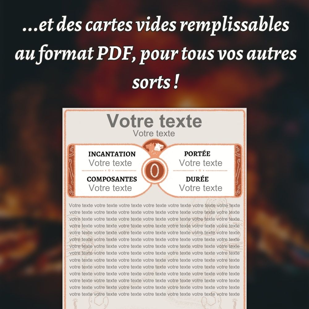 ✨ En plus des sorts ci-dessous, ce jeu contient des cartes vides remplissables au format PDF pour tous vos autres sorts ! ✨