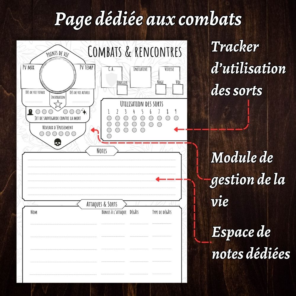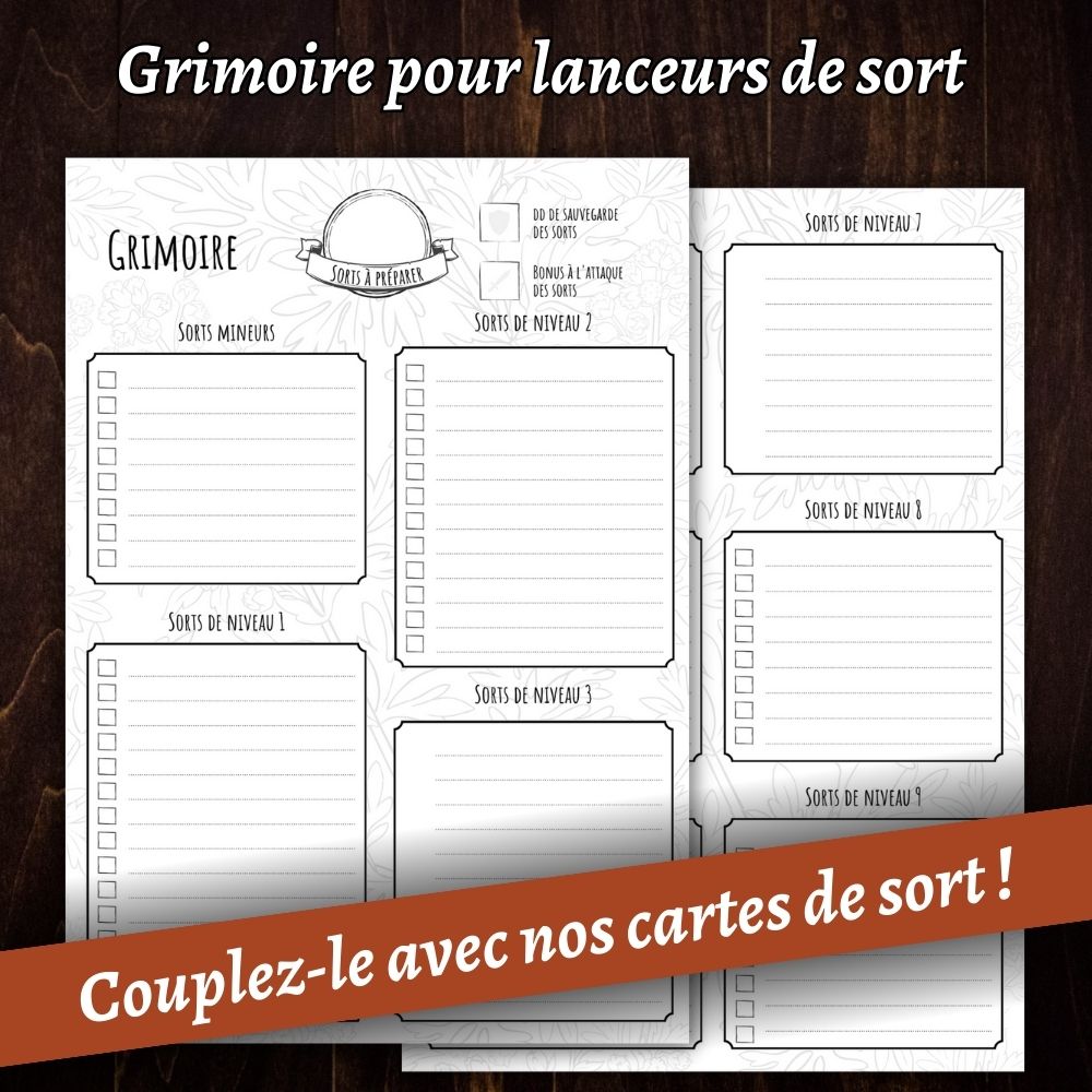 • 2 pages de Grimoires pour tous vos sorts (couplez-les avec nos cartes de sort pour une efficacité optimale !)