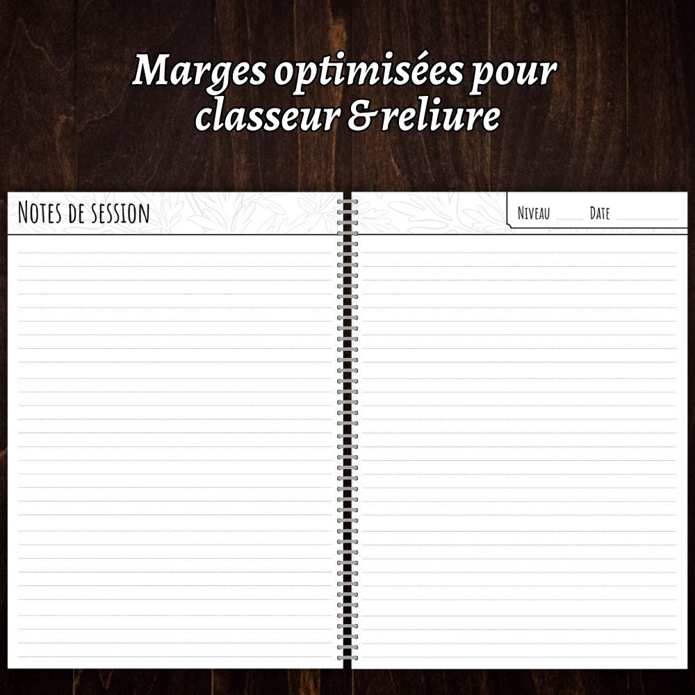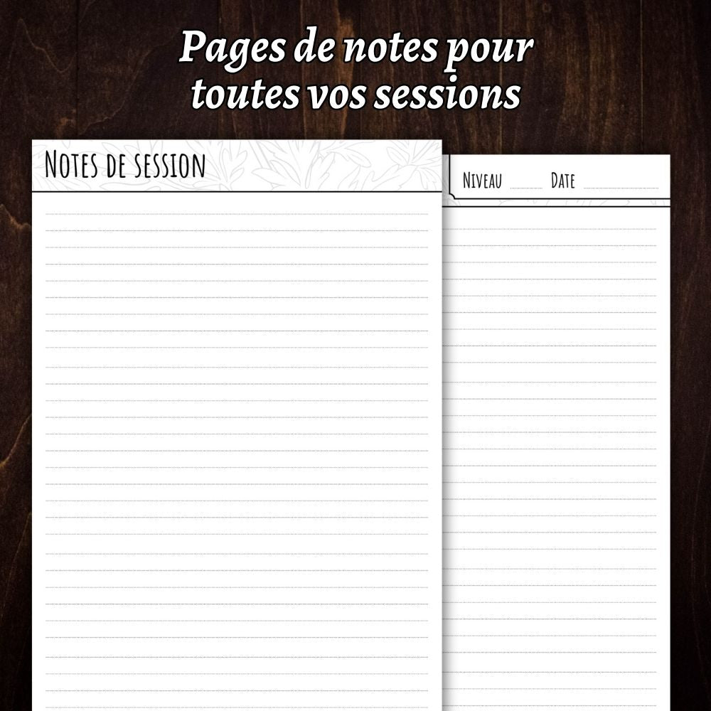 • 20 double-pages dédiées à vos Notes de session, pour ne plus jamais oublier une quête, un PNJ ou une misère qu'un autre personnage vous a fait 😏