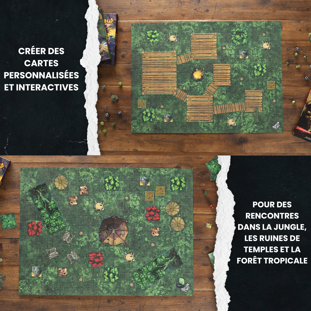 Transportez vos joueurs dans des cités perdues et des temples oubliés, inspirés des civilisations Maya et Inca. Naviguez à travers des jungles denses, traversez des rivières sinueuses et découvrez des trésors cachés tout en affrontant des pièges mortels et des créatures légendaires. Chaque pièce de décor est magnifiquement illustrée et prête à l'emploi, rendant vos sessions de jeu plus captivantes que jamais.